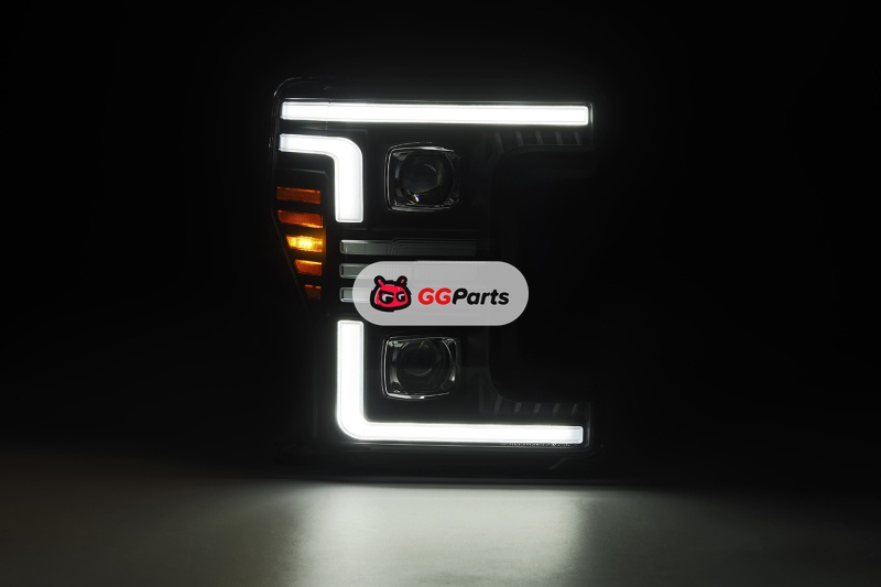AlphaRex 17-19 Ford F-250/350/450/550 Super Duty PRO-Series Proj Headlights Black w/SeqSig & DRL