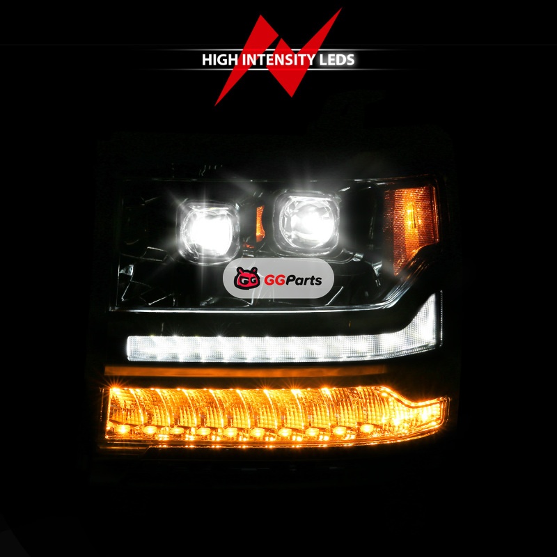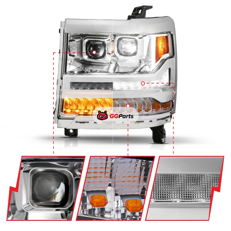 ANZO 16-18 Chevy Silverado 1500 (Factory HID Models ONLY) Full LED Proj Headlights Chrome - Pair