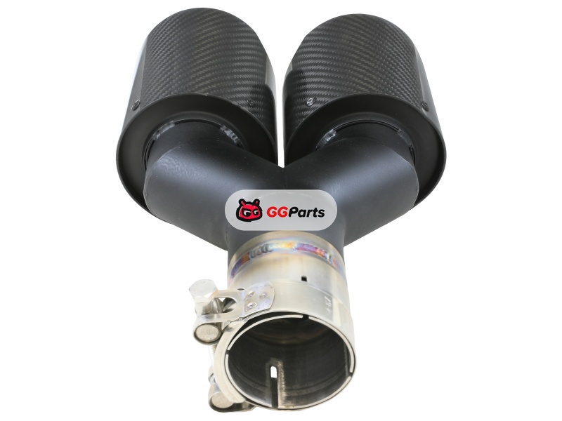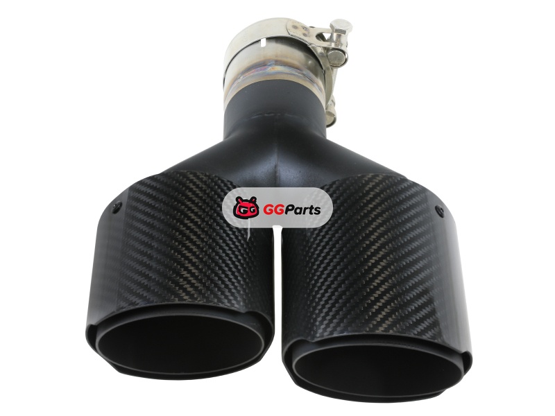 aFe Takeda 2.5in 304 Stainless Steel Clamp-on Exhaust Tip Driver side 2.5in Inlet 4in Dual-Carbon