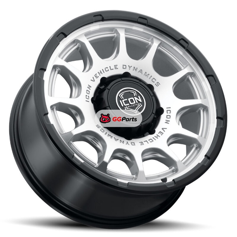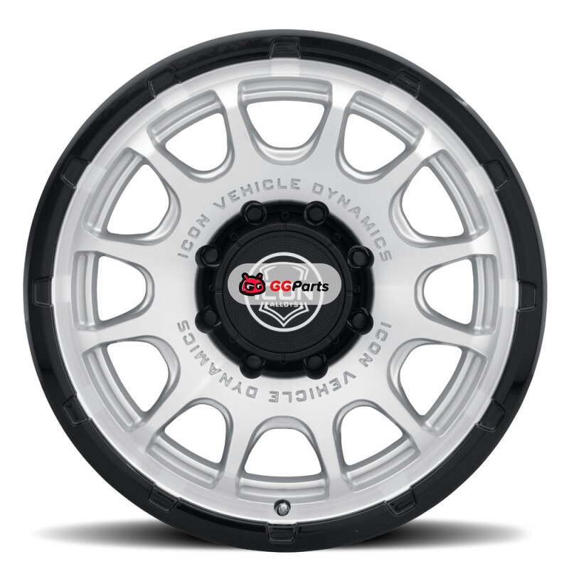 ICON Alloys Rancho 20x9 / 8x170 / 6mm / 5.25in BS Silver MACH w/ Gloss Black Lip Wheel