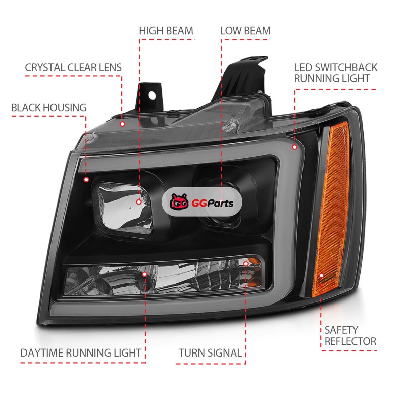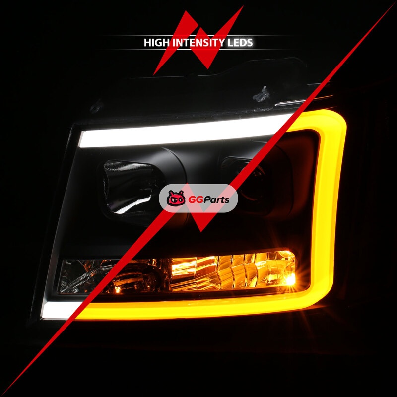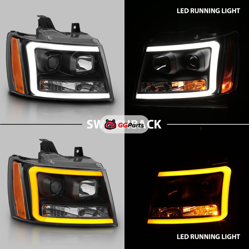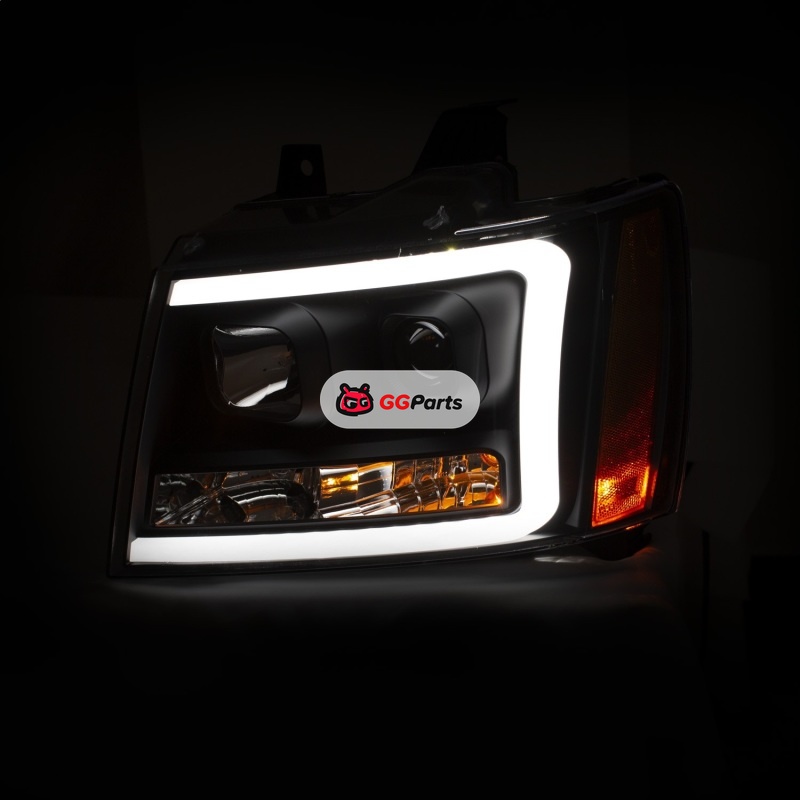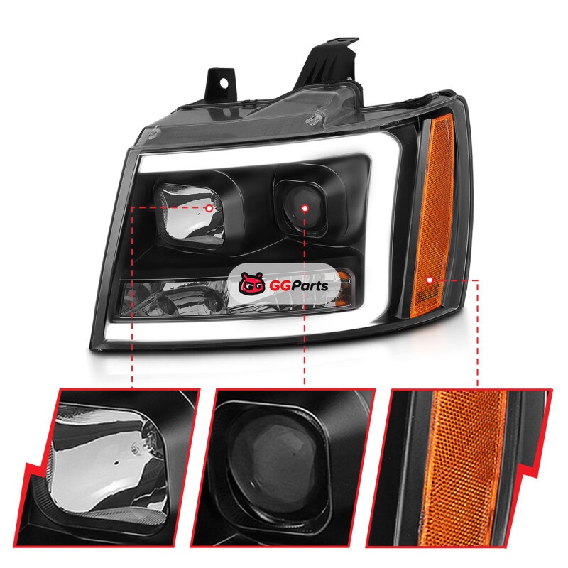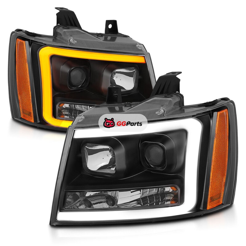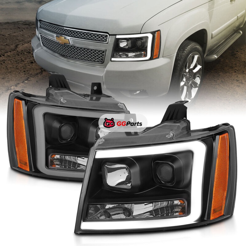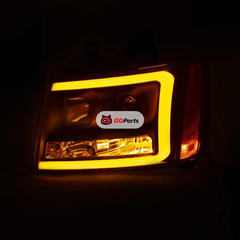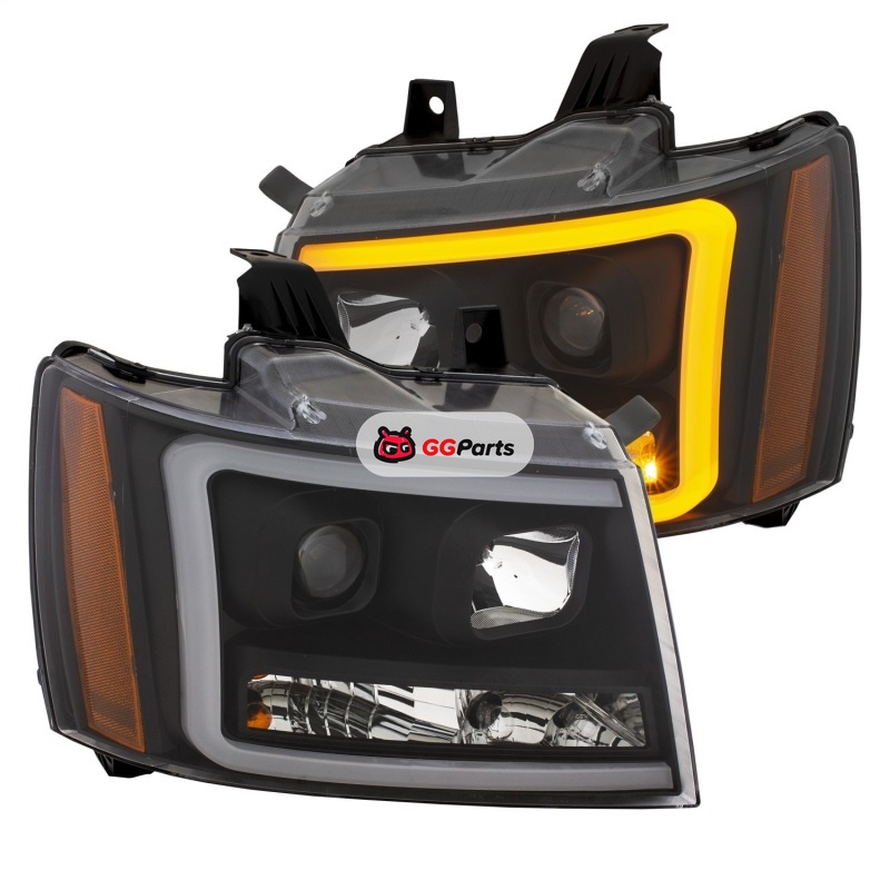 ANZO 07-14 Chevy Tahoe Projector Headlights w/ Plank Style Design Black w/ Amber
