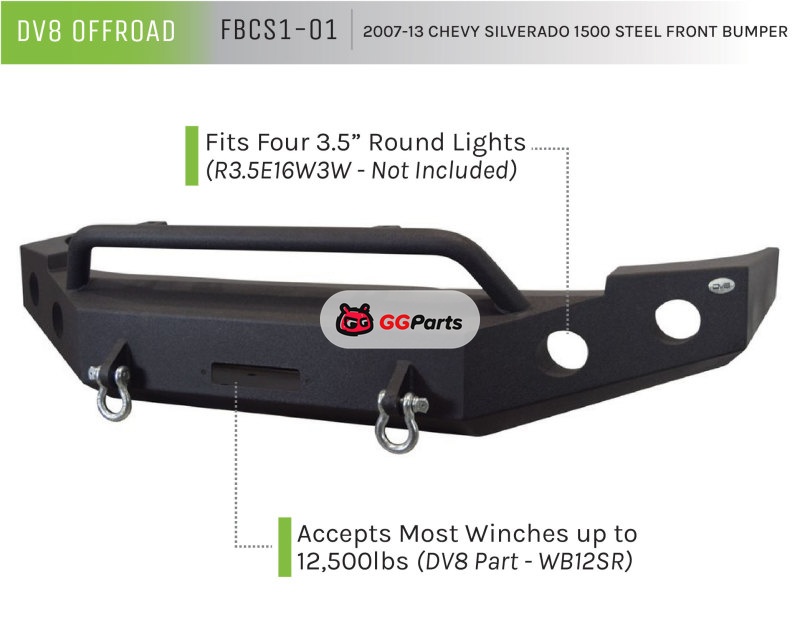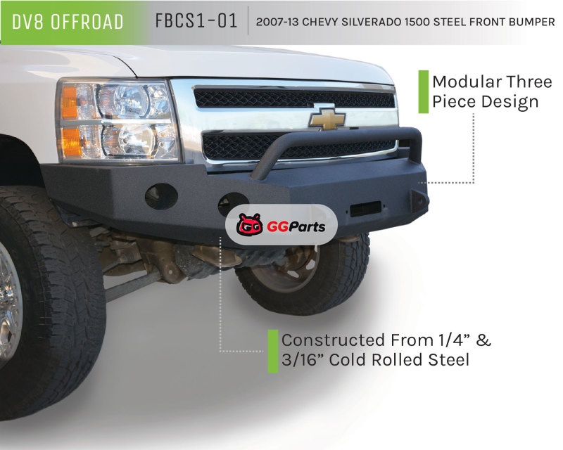 DV8 Offroad 07-13 Chevrolet Silverado 1500 Front Bumper - Black Powdercoat