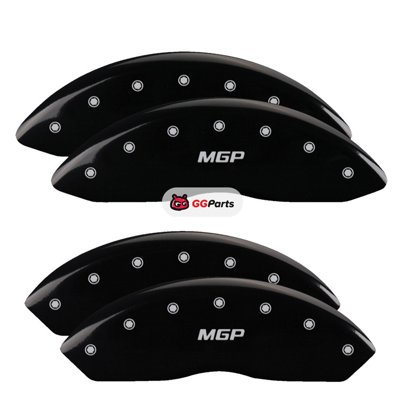 MGP 4 Caliper Covers Engraved Front & Rear MGP Black Finish Silver Char 2014 Chevrolet Express 2500