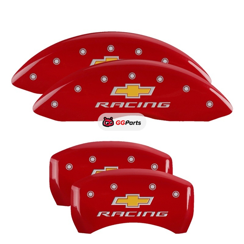 MGP 4 Caliper Covers Engraved Front & Rear Chevy Racing Red Finish Silver Char 2019 Chevrolet Malibu