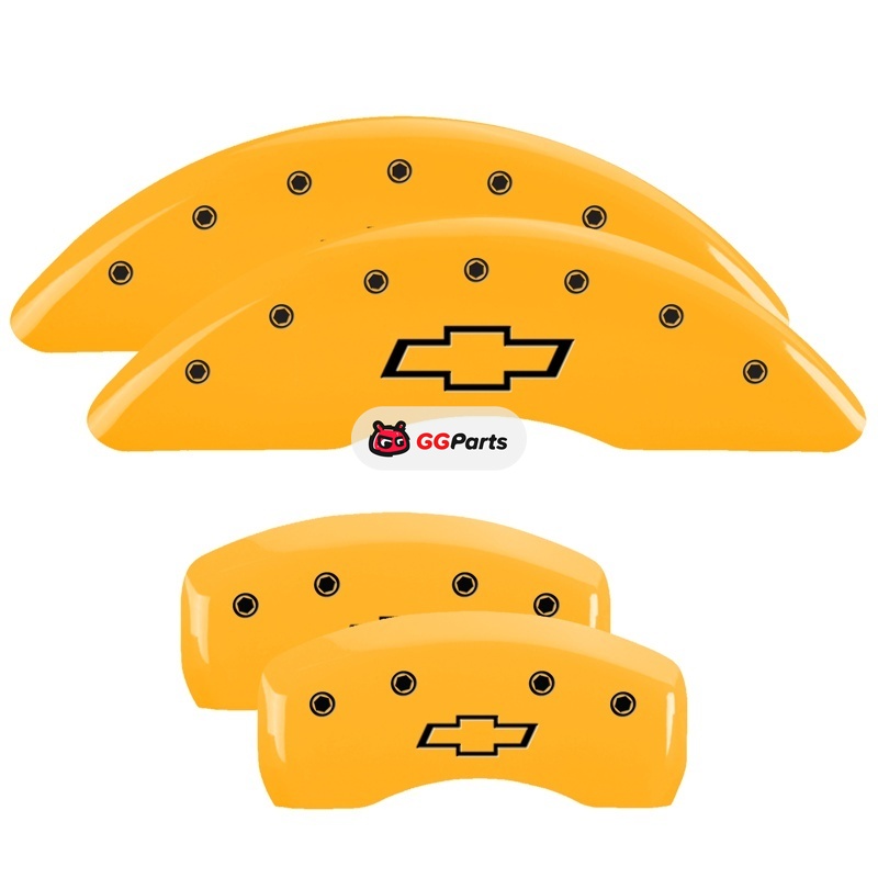 MGP 4 Caliper Covers Engraved Front & Rear Bowtie Yellow Finish Black Char 2019 Chevrolet Traverse