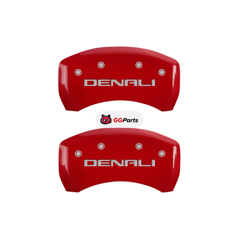 MGP 4 Caliper Covers Engraved Front & Rear Denali Red Finish Silver Char 2019 GMC Arcadia